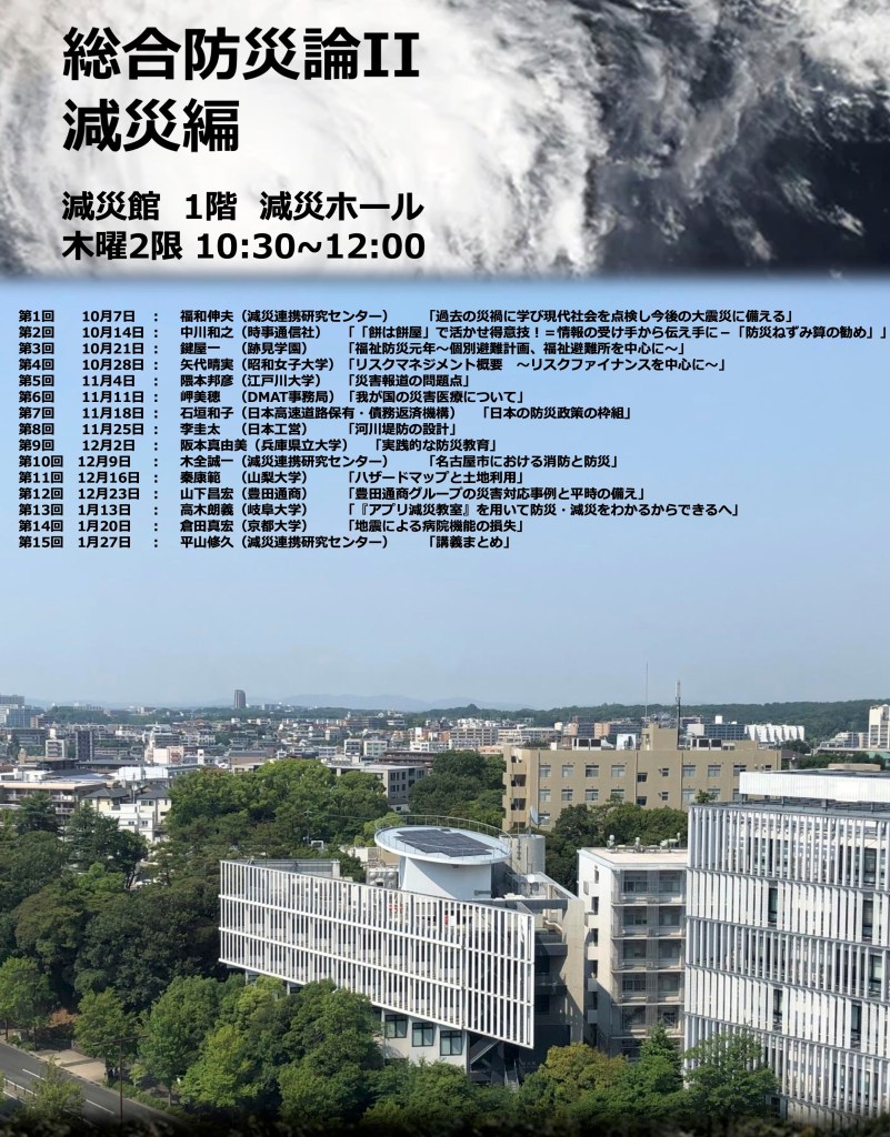 名古屋大学大学院環境学研究科「2021年度 総合防災論2」が本日開講となります。