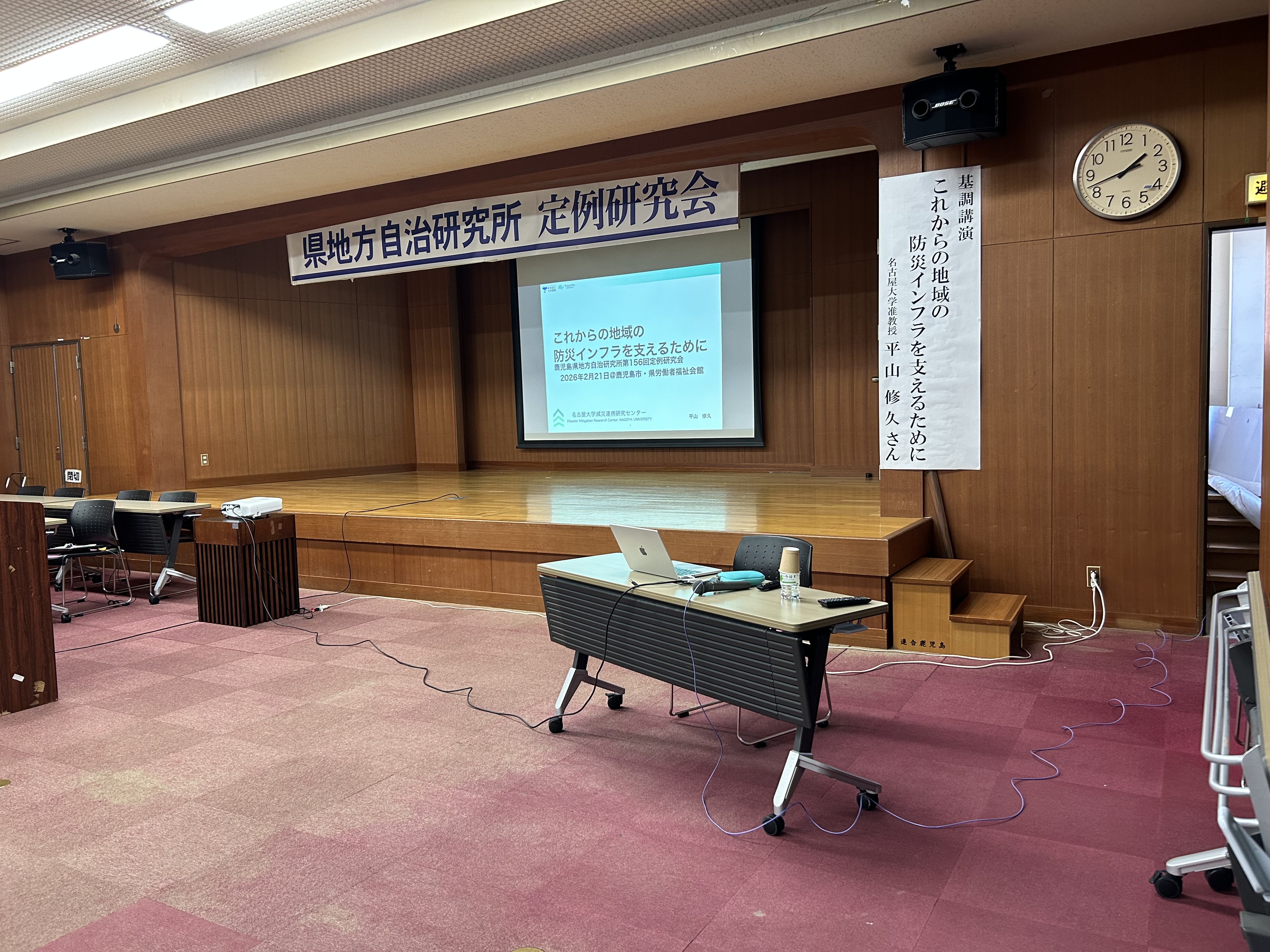 平山准教授は,2026年2月21日,鹿児島県地方自治研究所第156回定例研究会において,「これからの地域の防災インフラを支えるために」と題した基調講演を行いました。